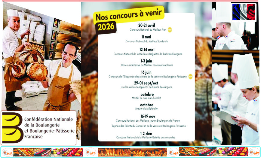 En Francia 2026 será un año repleto de concursos. Ya está en marcha la nueva temporada de concursos profesionales organizados por la Confederación Nacional Francesa de Panadería y Pastelería (CNBPF), comenzando en abril con una nueva incorporación: ¡el Concurso Nacional del Mejor Flan y luego la primera edición del Concurso de Elocuencia para Profesionales de Ventas en Panadería y Pastelería que también se celebrará el 16 de junio. Estos concursos demuestran la excelencia y la maestría de la panadería artesanal francesa y ofrecen una oportunidad única para aprender, afrontar nuevos retos y promocionar las creaciones de sus profesionales. Te adelantamos el calendario de concursos de 2026.